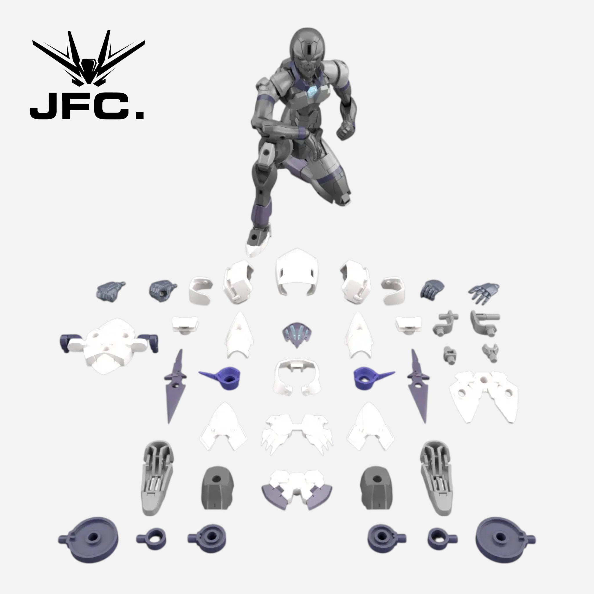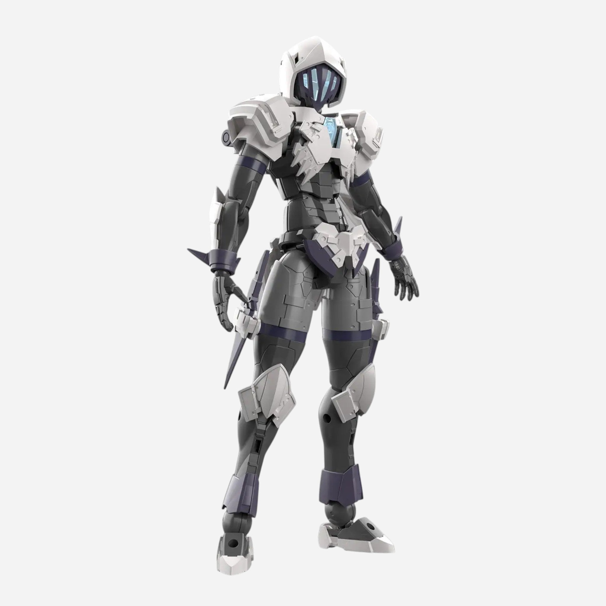 The starter set includes armor and armed parts in addition to the base "silhouette" (elementary body). The body included with the Rozen Assassin is the same as the 30MF Rozen Knight; the "silhouette" is fully posable like a human body, including movable axes on the head and neck that allow natural flexibility.