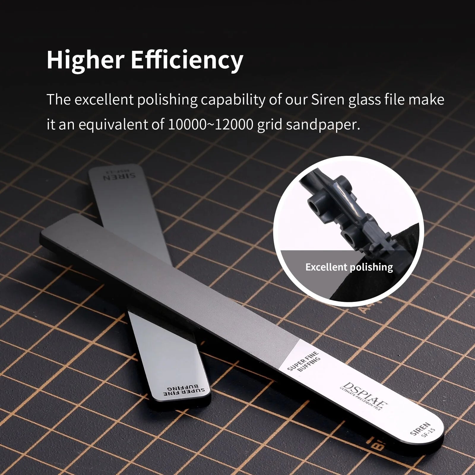 The DSPIAE Siren Ultimate Precision Glass Files are crafted from high-quality tempered glass using advanced nano technology for superior filing and buffing performance.