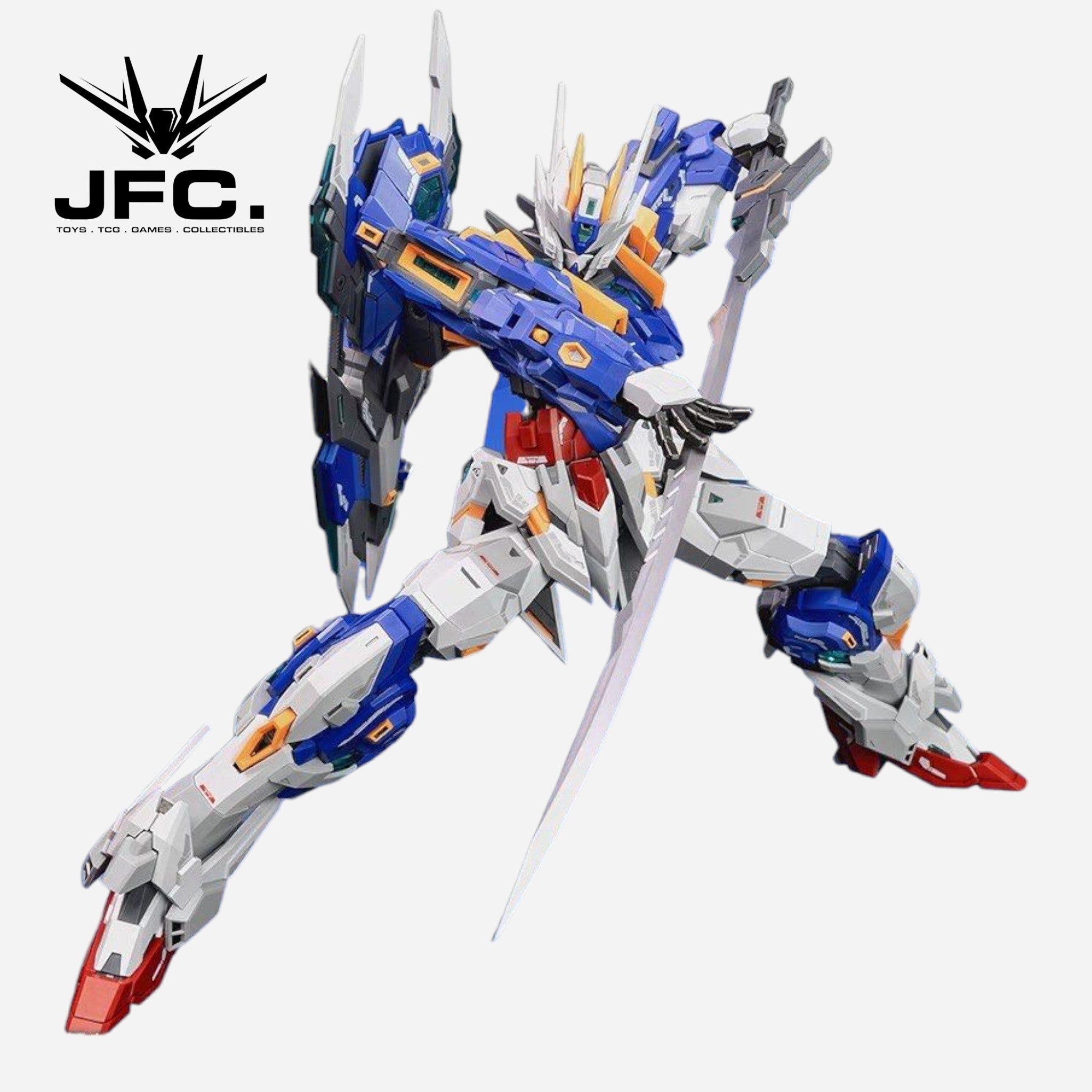 The SNAA 1/100 YR-02 Blade King is an original mecha design with a sharp, sword-focused aesthetic and imposing armor plating. Its layered design and bold silhouette give it a commanding presence in any 1/100 scale collection.