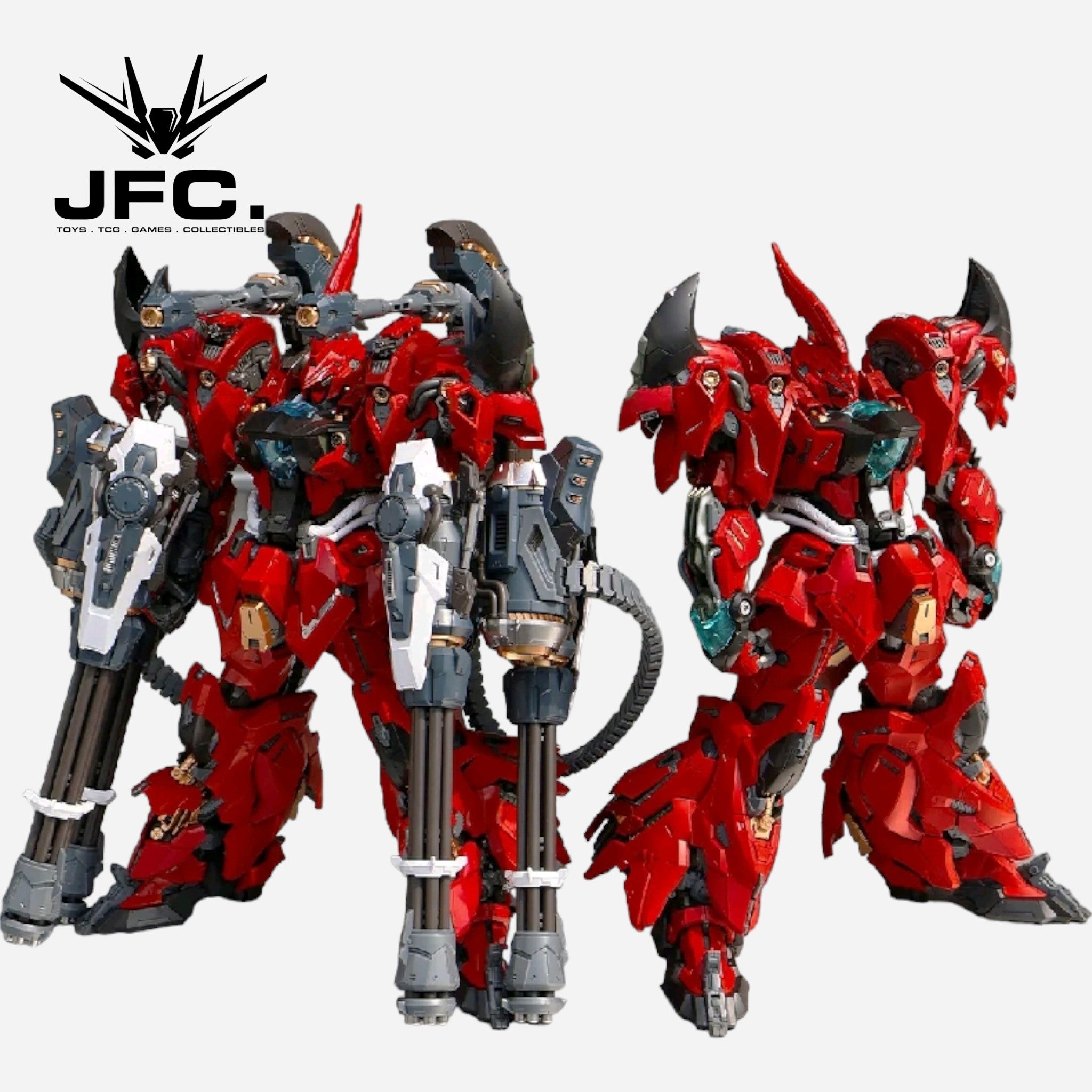 It comes with a huge range of armaments and weapons, including its double barrelled gatling guns and shape shifting axe! This is definitely a mecha you want in your collection! -??Get yours today!