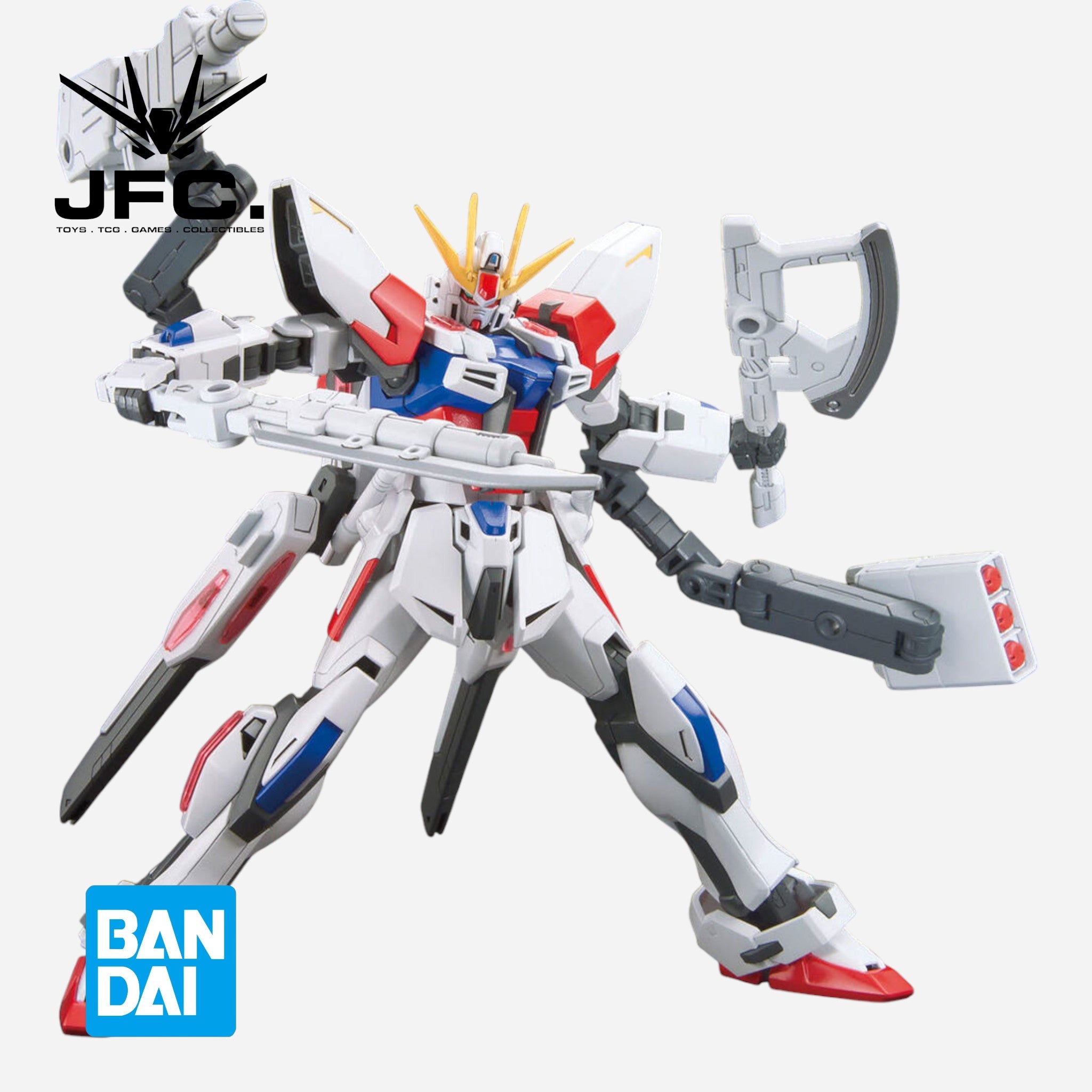 You can combine the shield and stabilizer to create a huge, powerful fighting weapon; the axe and sword can also be equipped as rifles. The backpack transforms, and the missile launcher deploys. The arm joints can be used to customize your model with transformation and movement gimmicks, too.
