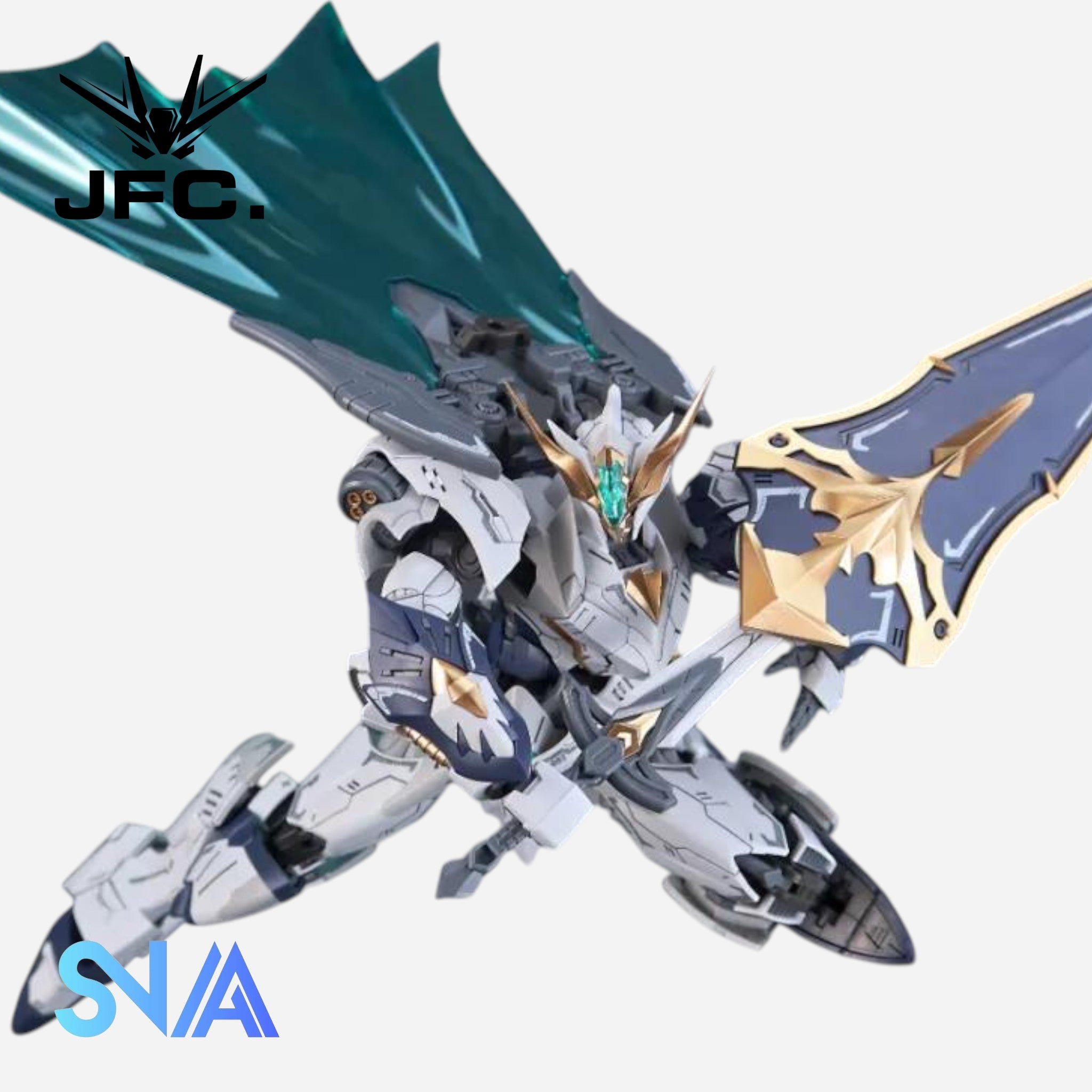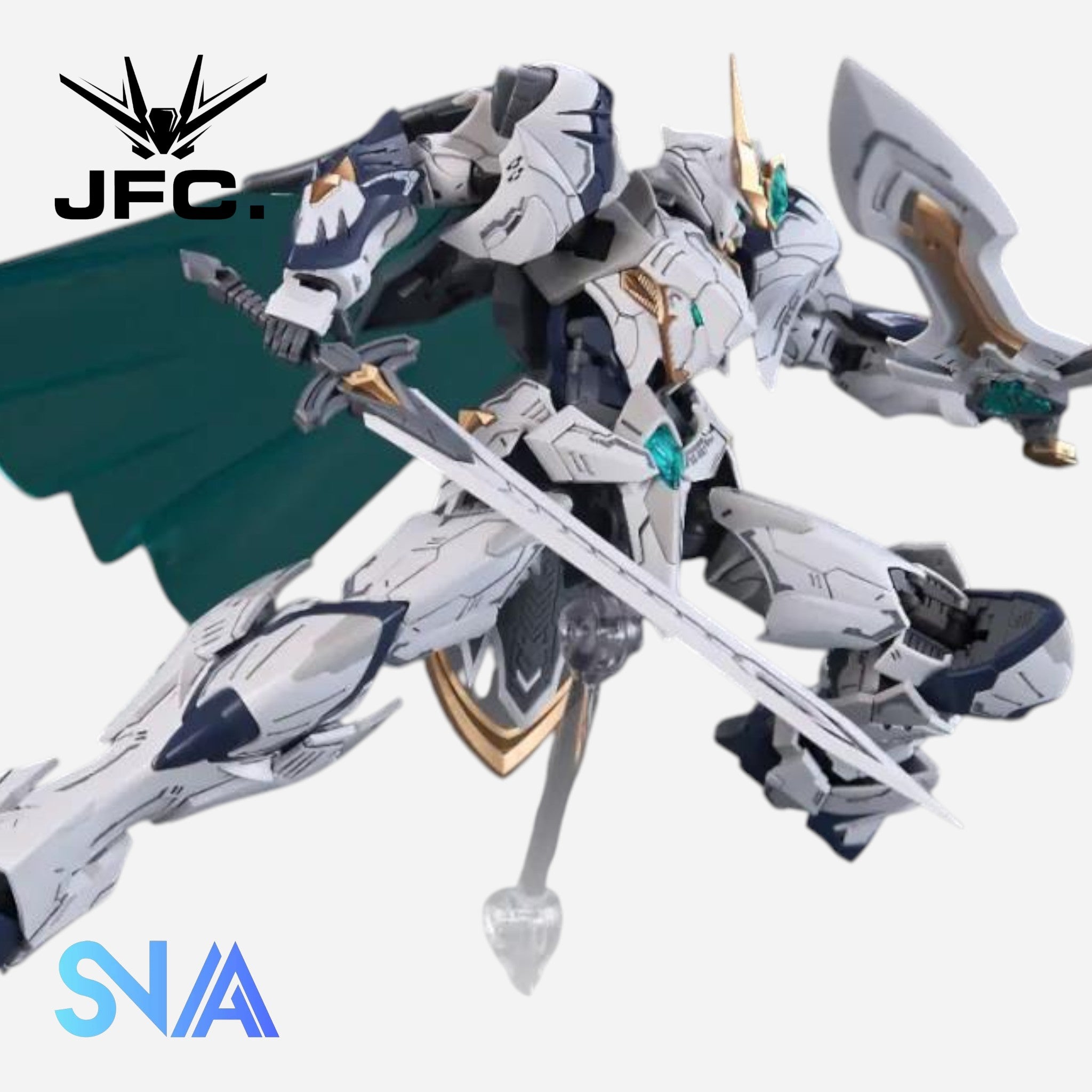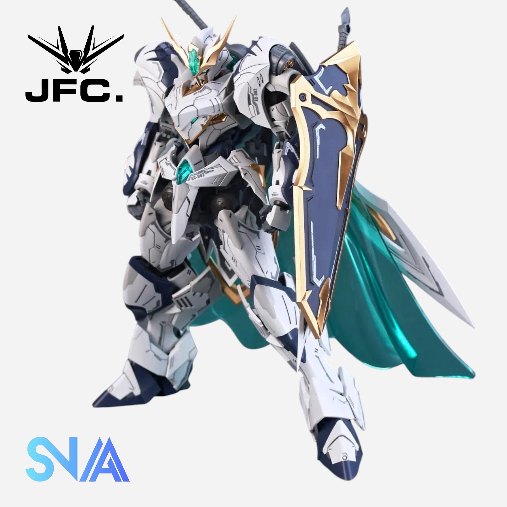 The SNAA BE 1/144 SC-002 Titan Great Sword Tristan is a knight-themed mecha with a powerful, sword-focused design and detailed armor plating. Its layered structure and bold silhouette give it an impressive presence in any 1/144 scale collection.