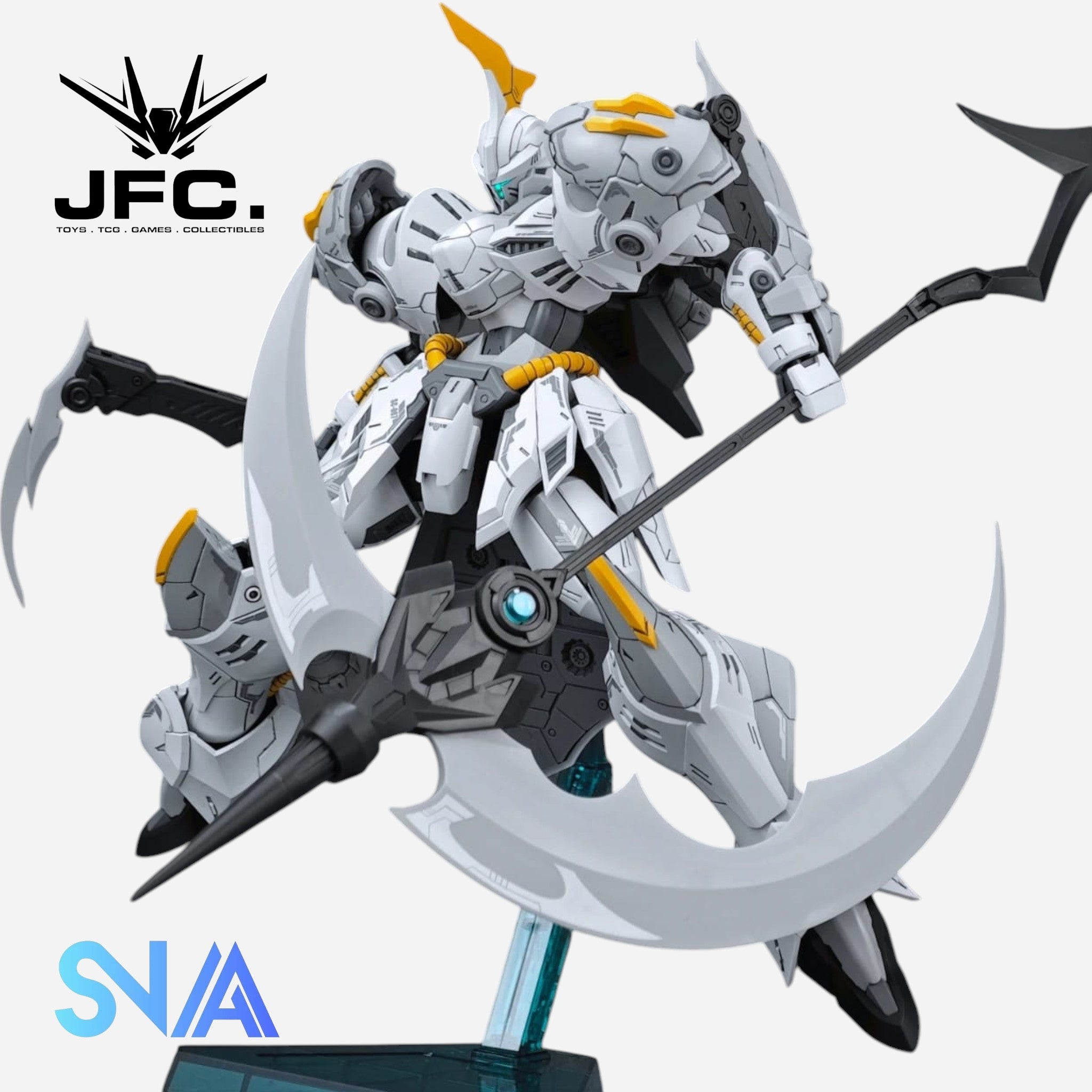 The SNAA SC-007 Iron Sickle is a knight-themed HG-style mecha featuring a heavy, axe-and-sickle-inspired design with layered armor details. Its bold silhouette and dynamic proportions make it a standout in any HG-style collection.