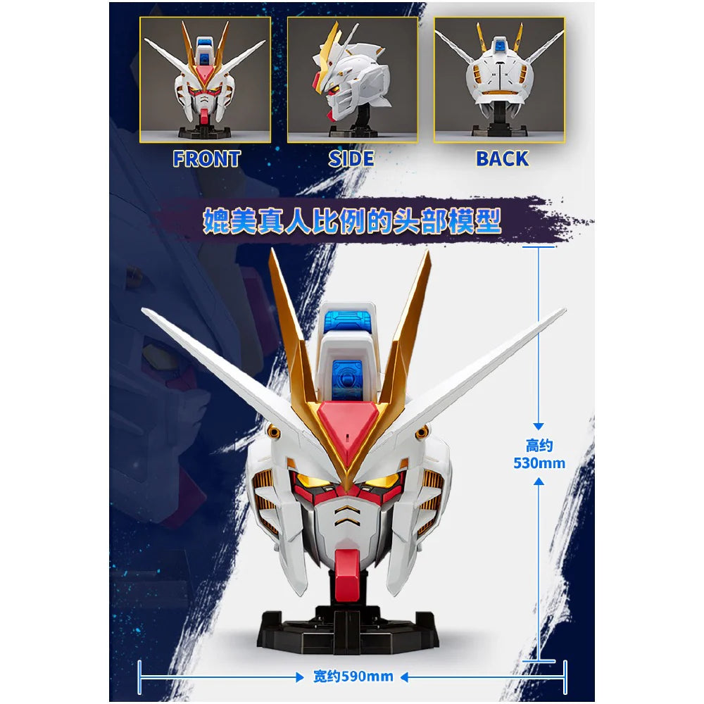 This highly detailed head sculpt features the many memorable details of the iconic Strike Freedom Gundam. Standing over 20 inches tall the Gundam head features LED light up eyes that will enhance any display the head sculpt is featured in.