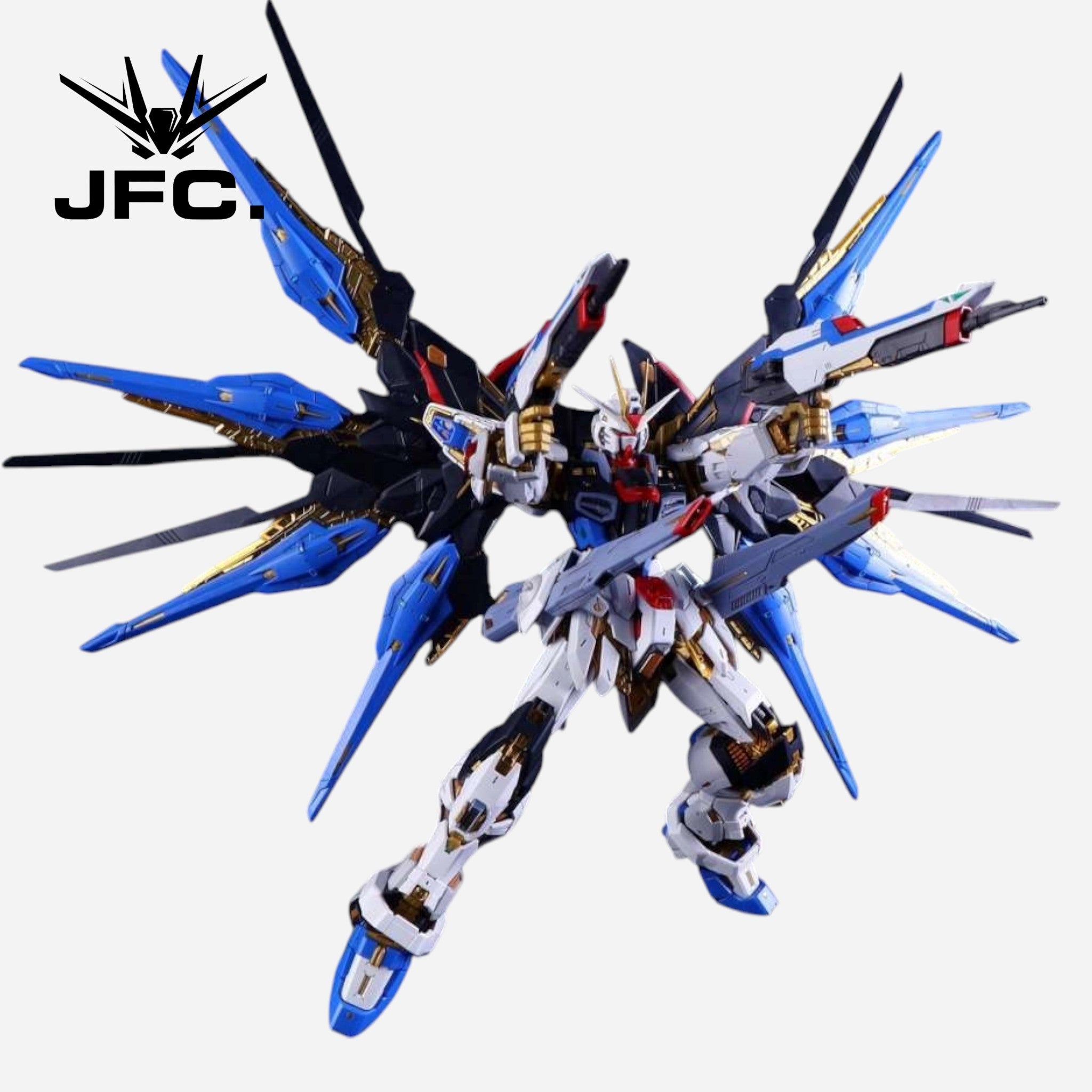 This Master Grade Extreme style kit brings the legendary Strike Freedom Gundam to life in dramatic 1/100 scale with intricate frame detail and dynamic articulation! Featuring layered armor shapes and a bold silhouette, this third-party interpretation captures the essence of the iconic mobile suit for expressive display and action poses.