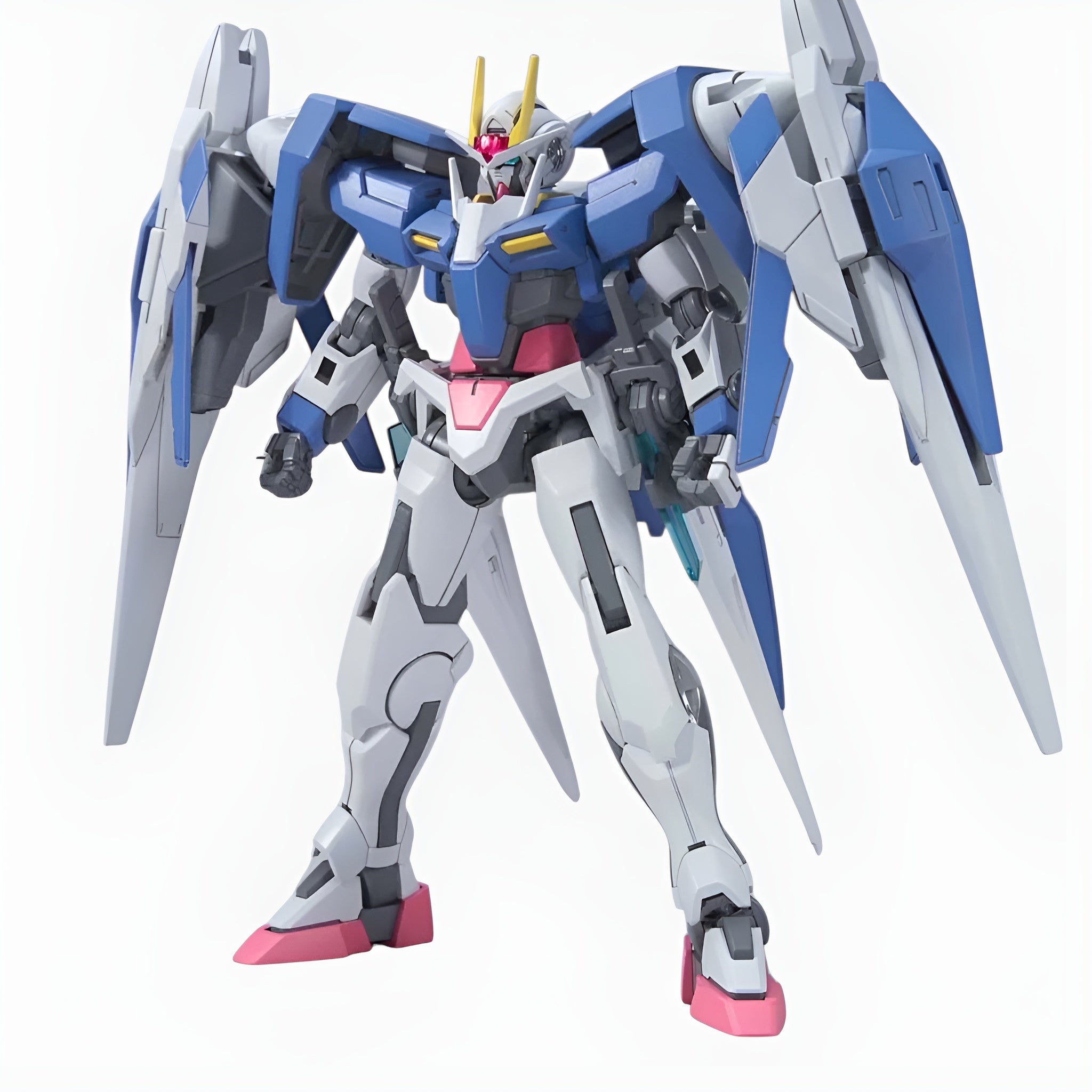 This snap-fit kit allows you to build a sharply detailed and very poseable 00 Gundam along with its support unit 0 Raiser, which can be docked to the back of the Mobile Suit to form the powered-up 00 Raiser.