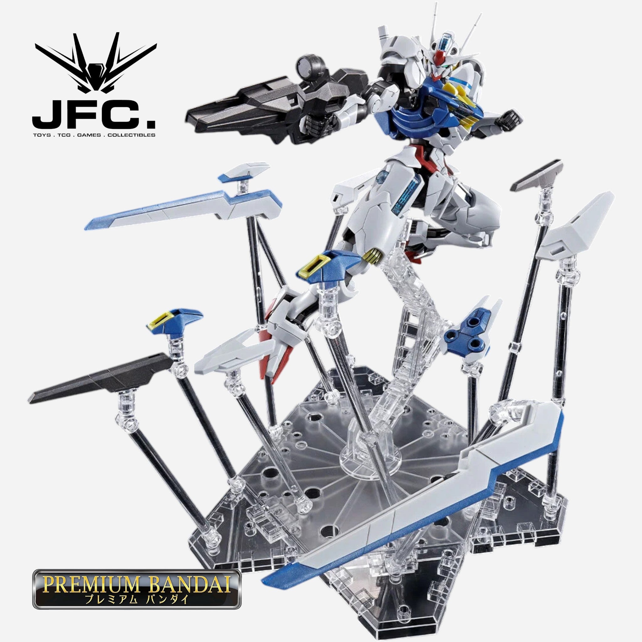 The kit is a complete remold of the regular released HG 1/144 Gundam Aerial provided with glittery clear parts for some of its shell units. The stickers are also printed in blue instead of the regular red to portray the permet score 6 state.