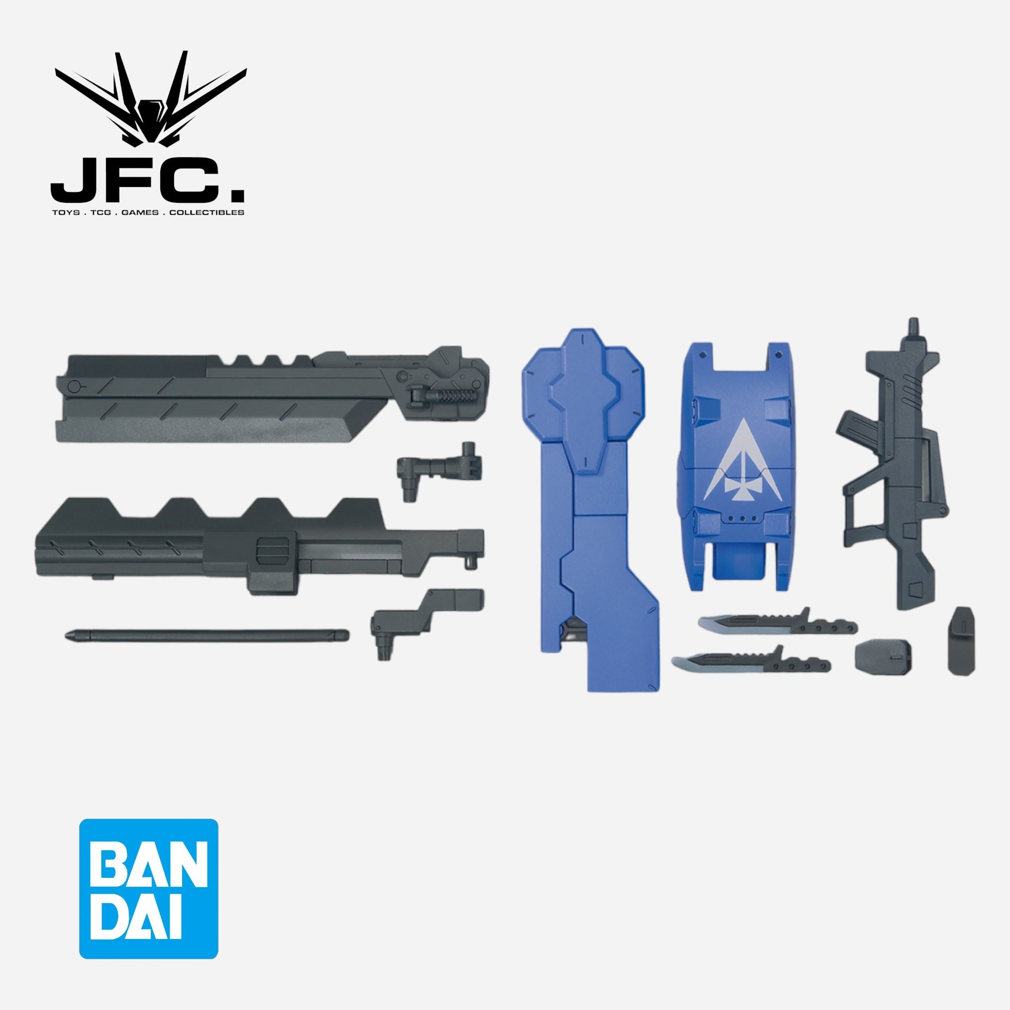 Parts are included to build its large Demolition Knife, a rifle, 2 knives, and the Bastard Chopper. Marking seals are also included.