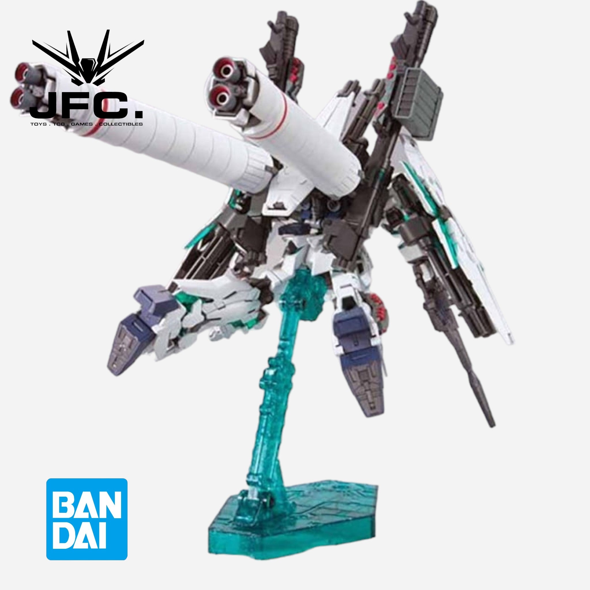 It comes with enough armaments to outfit a small army: two hyper bazookas, the Beam Magnum, four Beam Sabers, two Beam Saber blades, two anti-ship missles, two grenade launchers, four six-part hand grenades, six Beam Gatling Guns, its shield in stored state and three expanded sheilds, two large boosters, a rifle handle, and two gripping hands. Whew!