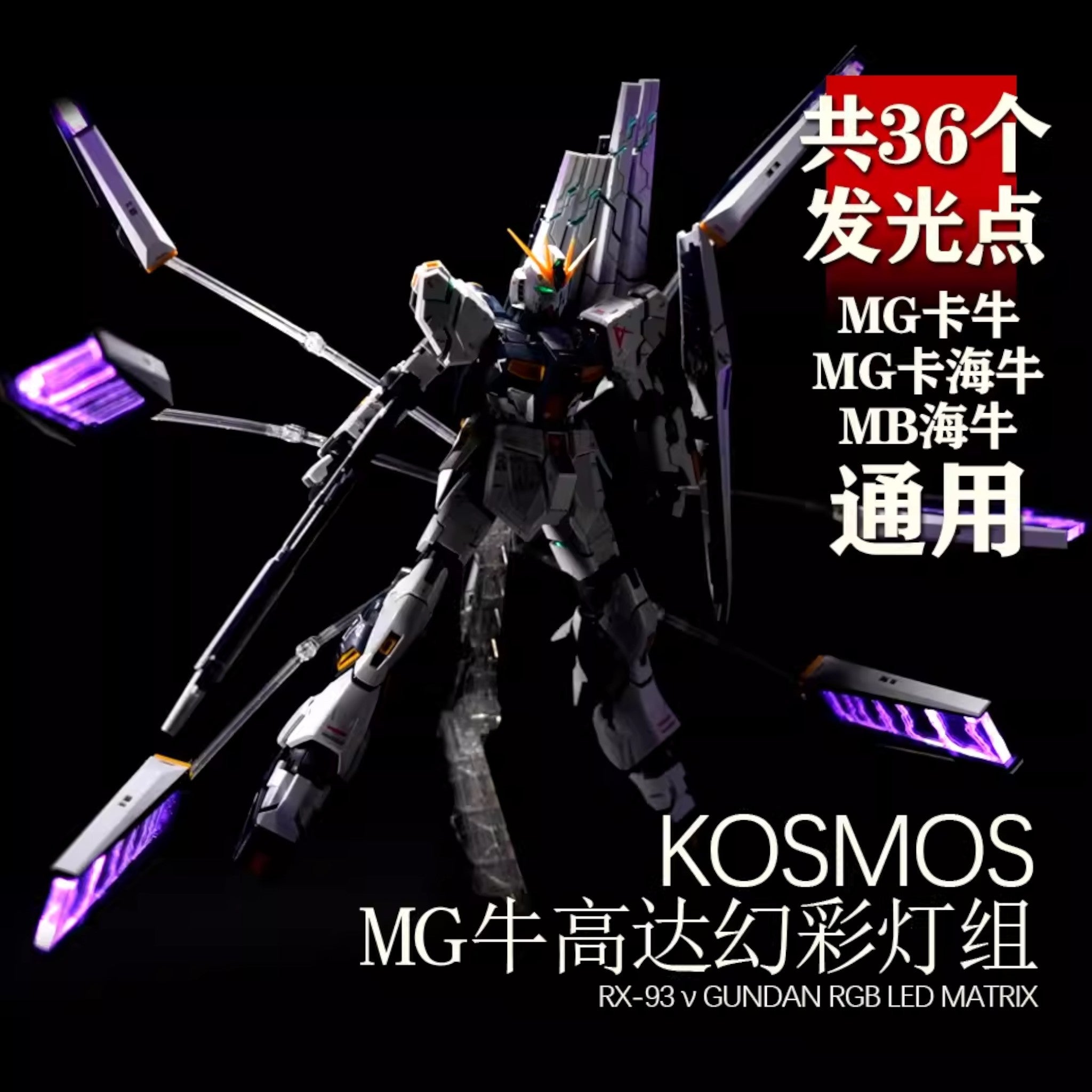 The KOSMOS LED Unit for the MG 1/100 Nu Gundam Ver. Ka is a premium lighting enhancement kit designed to illuminate the iconic fin funnels and head of the Nu Gundam!