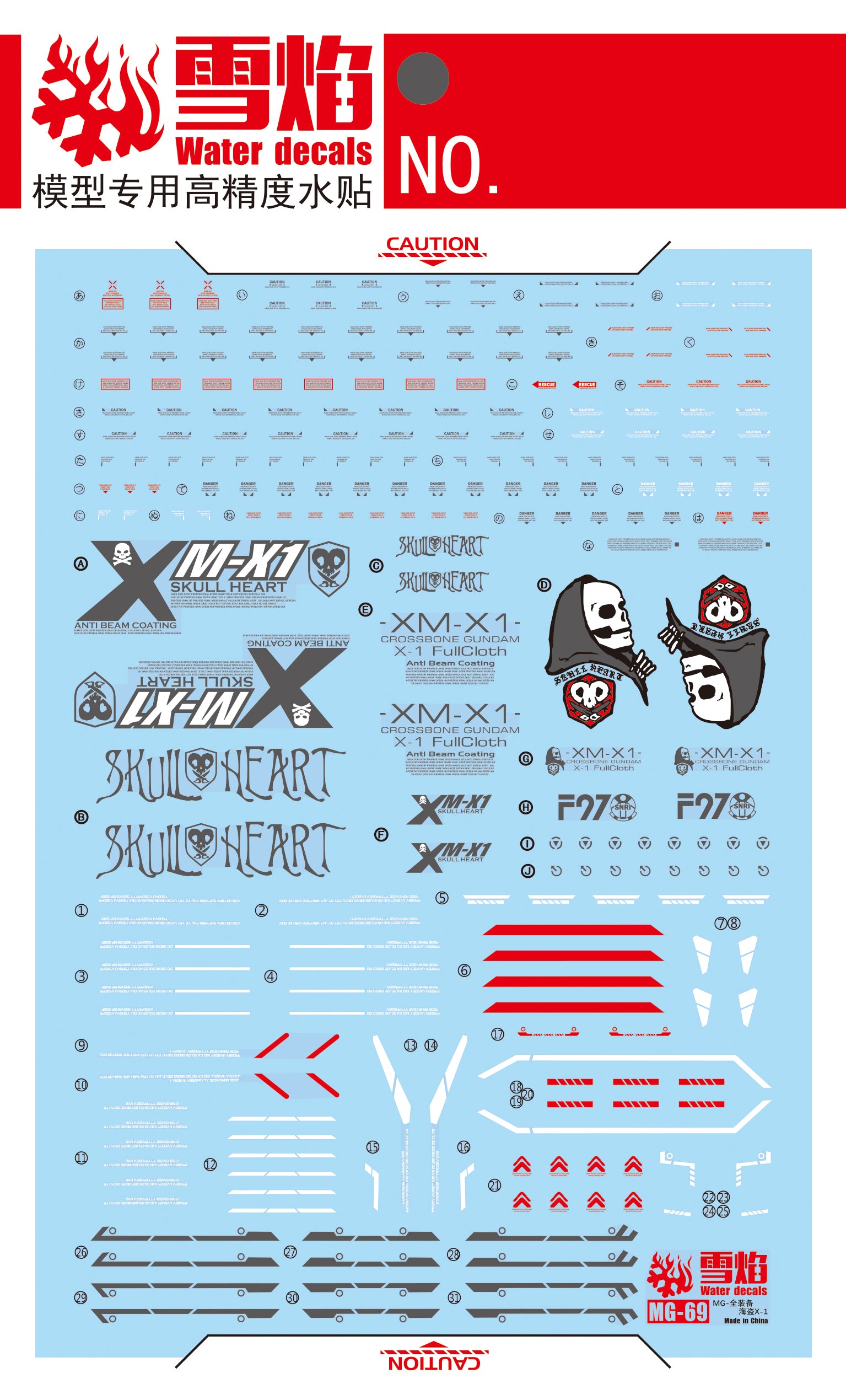 MG-69 | 1/100 CROSSBONE GUNDAM X-1 FULL CLOTH FLUORESCENT WATERSLIDE DECAL