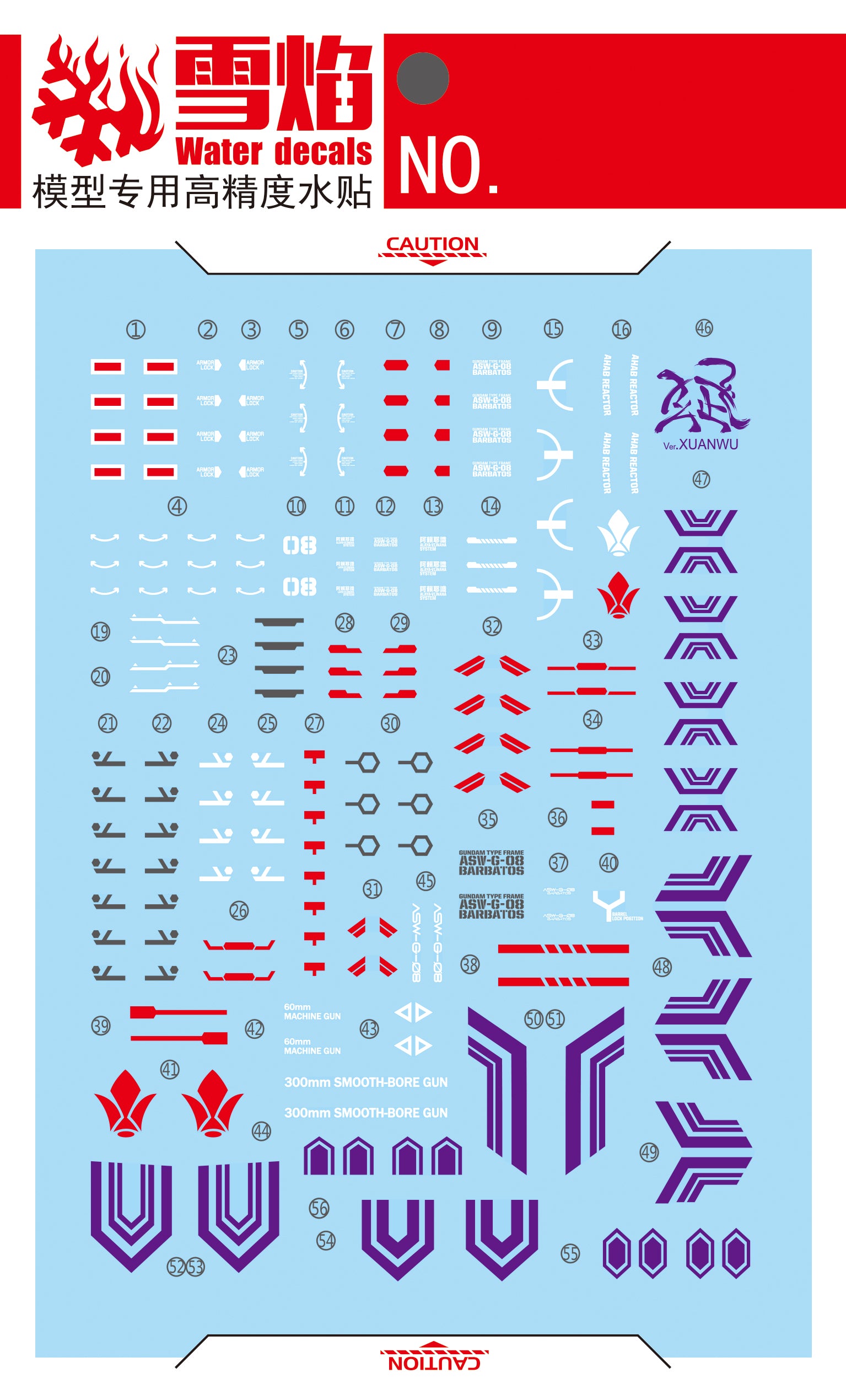 MG-86 | 1/100 GUNDAM BARBATOS (XUAN WU VER.) FLUORESCENT WATERSLIDE DECAL