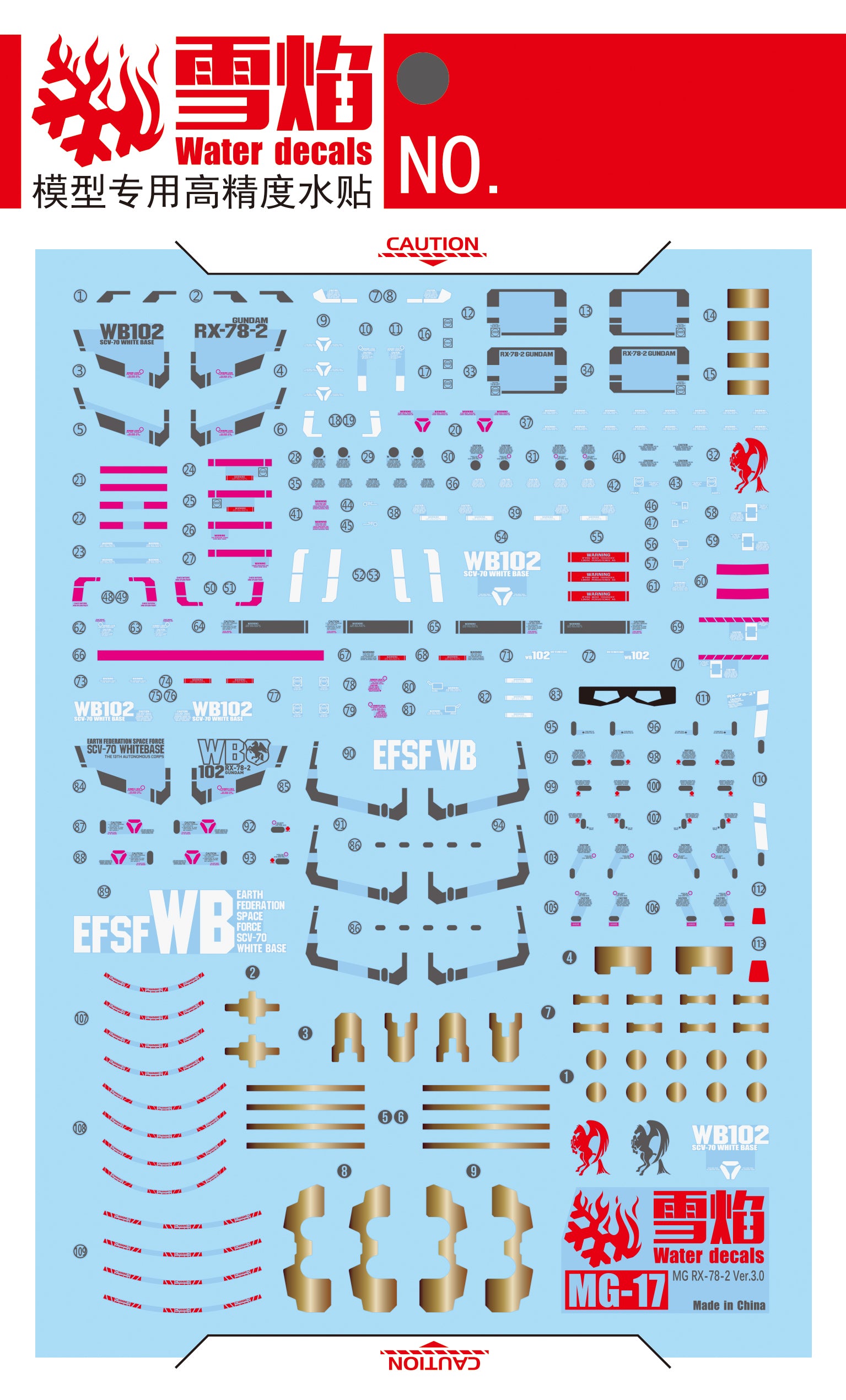 MG-17 | 1/100 RX-78-2 GUNDAM VER. 3.0 FLUORESCENT WATERSLIDE DECAL