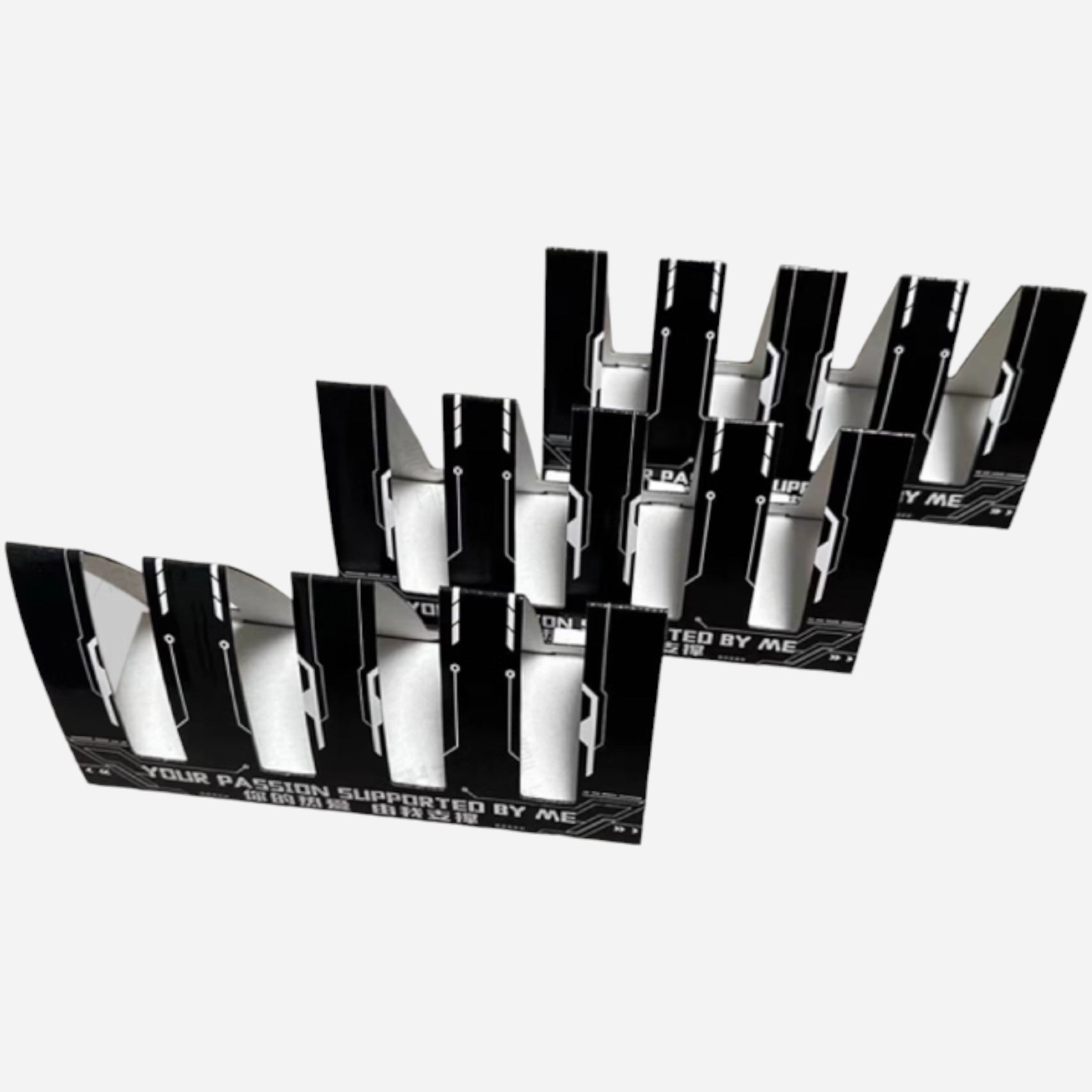 Three sets of stands are included; they'll prop runners up in a vertical position, saving space and making them easy to distinguish to improve the efficiency of assembly. They're foldable, too, so you can store them in very little space when they're not in use.