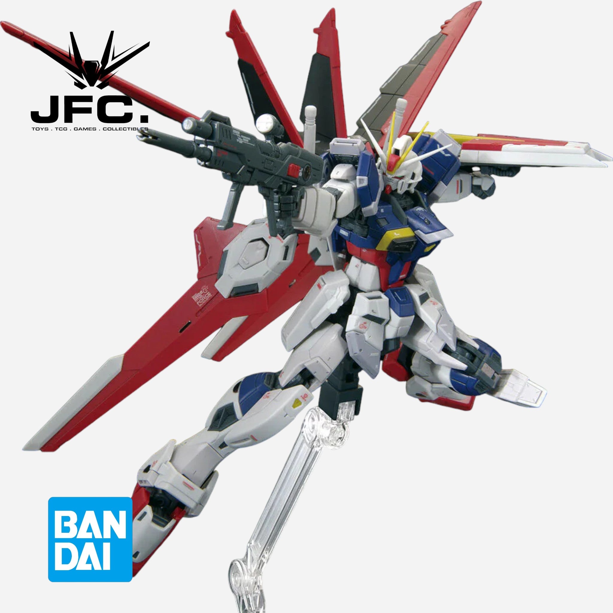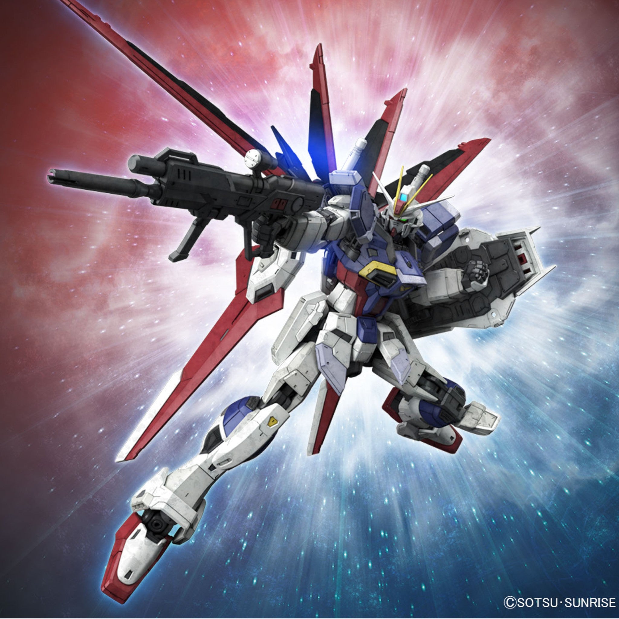 The color reproduction has been improved by dividing the parts, with even the minute differences between adjacent armor parts precisely expressed. The wings can be folded backwards, and the forearms can be twisted on a separate axis from the elbows. The shoulder armor rotates independently to reduce parts interference. The waist parts move block by block to ensure a wide range of motion. The knee armor moves in conjunction with the legs. Four types of hands for each side are included, as well as a beam rifle, shield, knife and beam saber. New realistic decals are included as well.