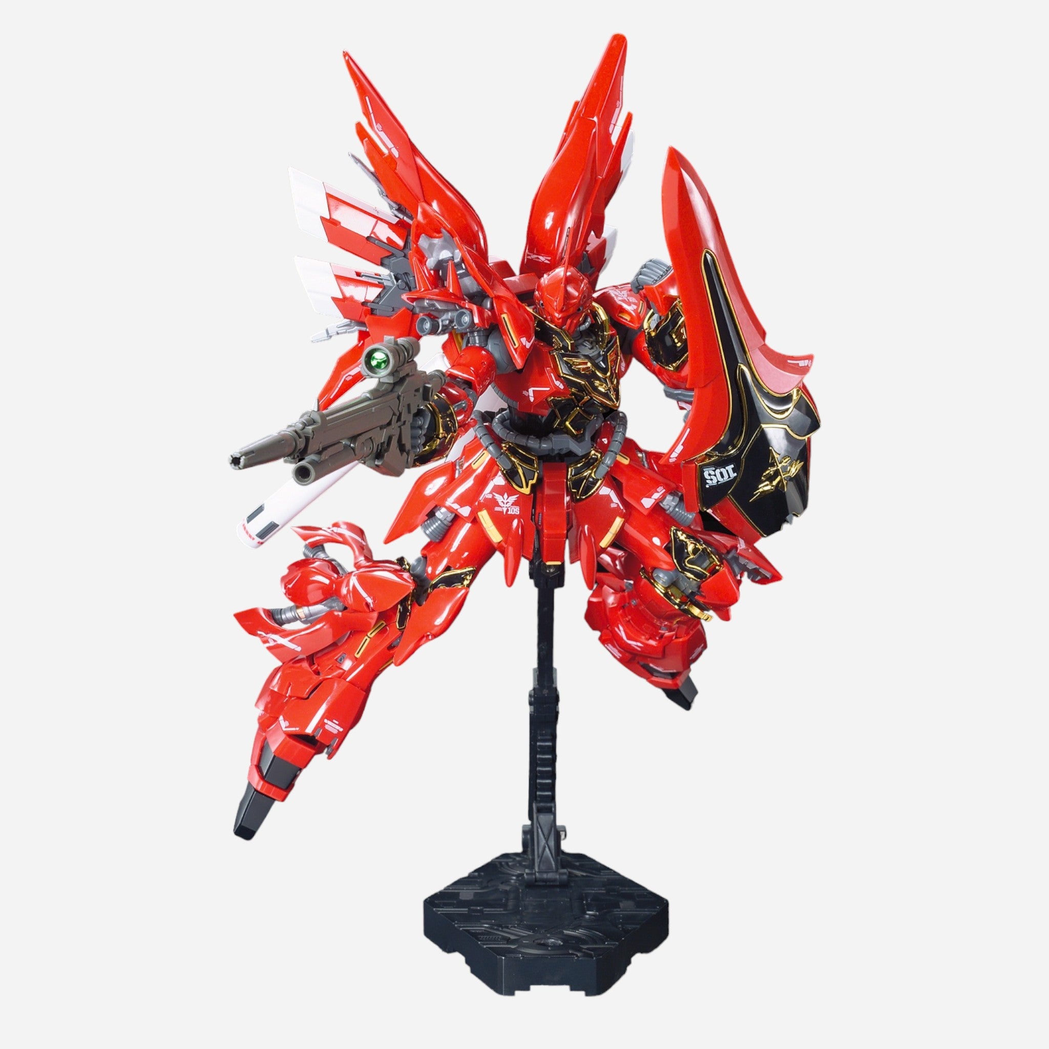 The Sinanju finally gets a Real Grade kit and wow is it detailed. The emblem parts are golden-plated for superior detail and the red parts feature a smooth glossy finish for extra impact!