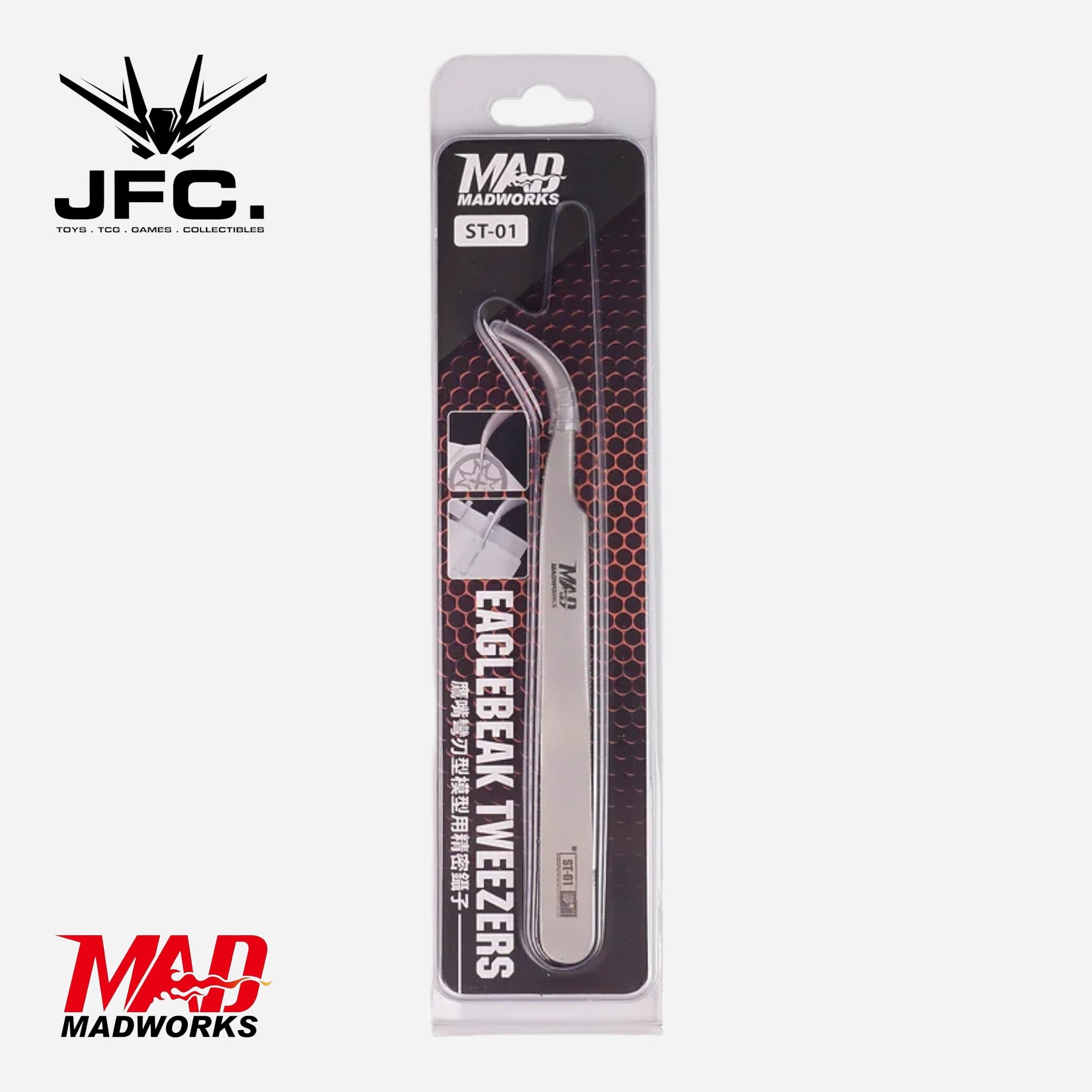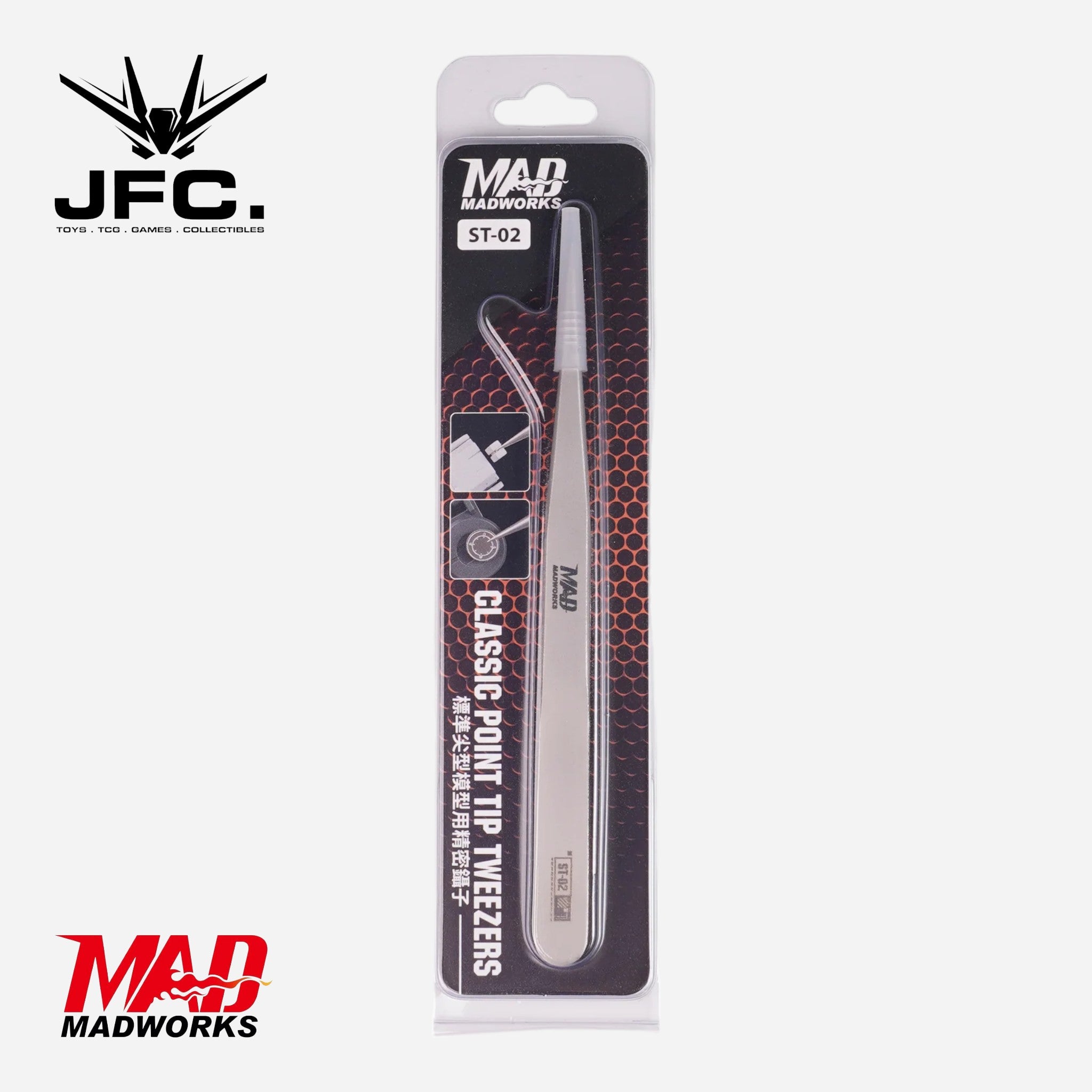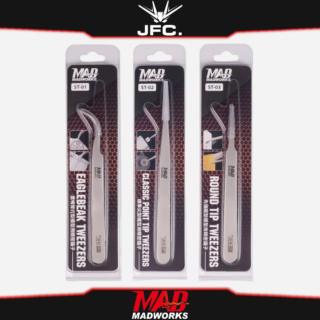 High precision tweezers made with strengthened stainless steel, designed and manufactured by MADWORKS for accurate handling of small parts during model kit assembly and hobby work.