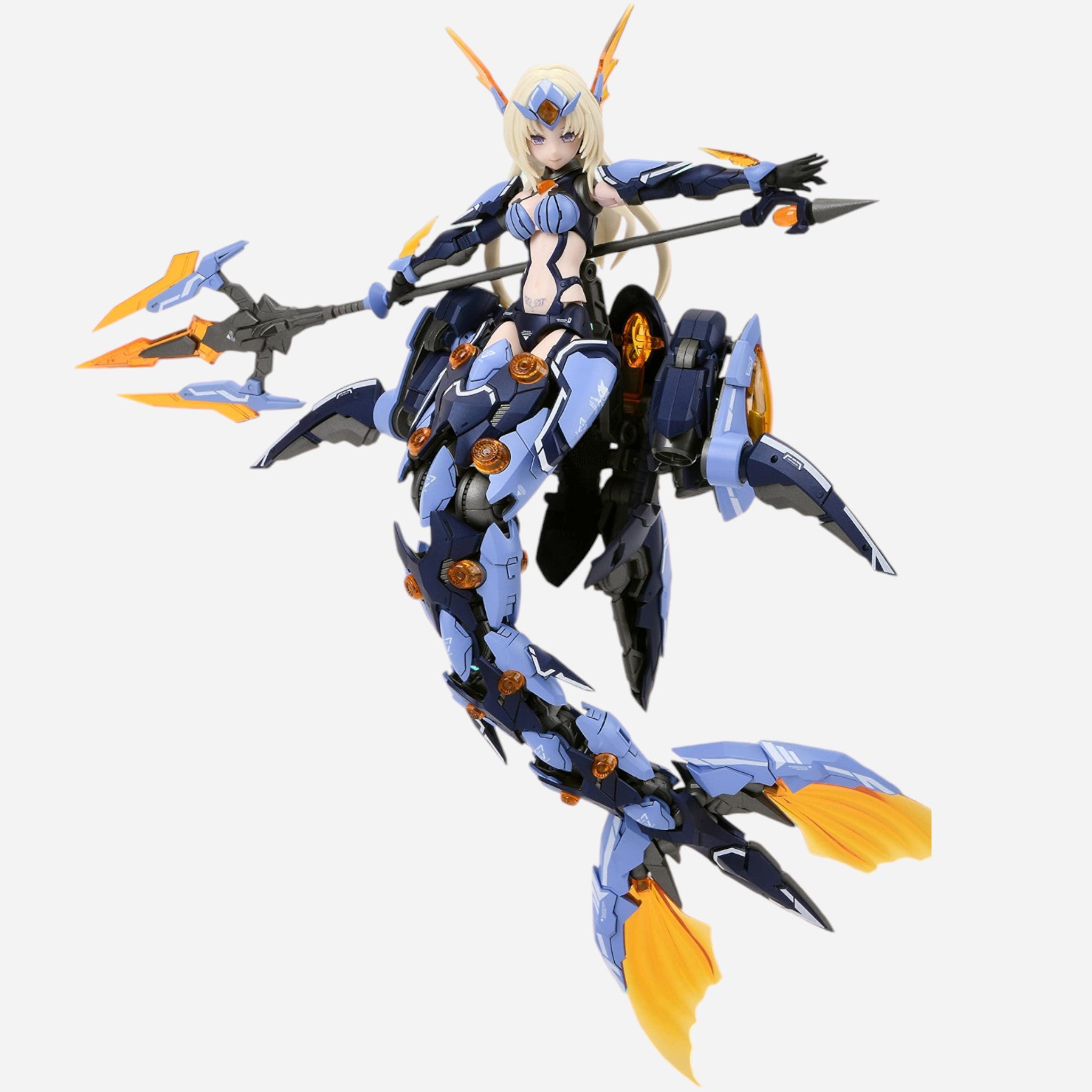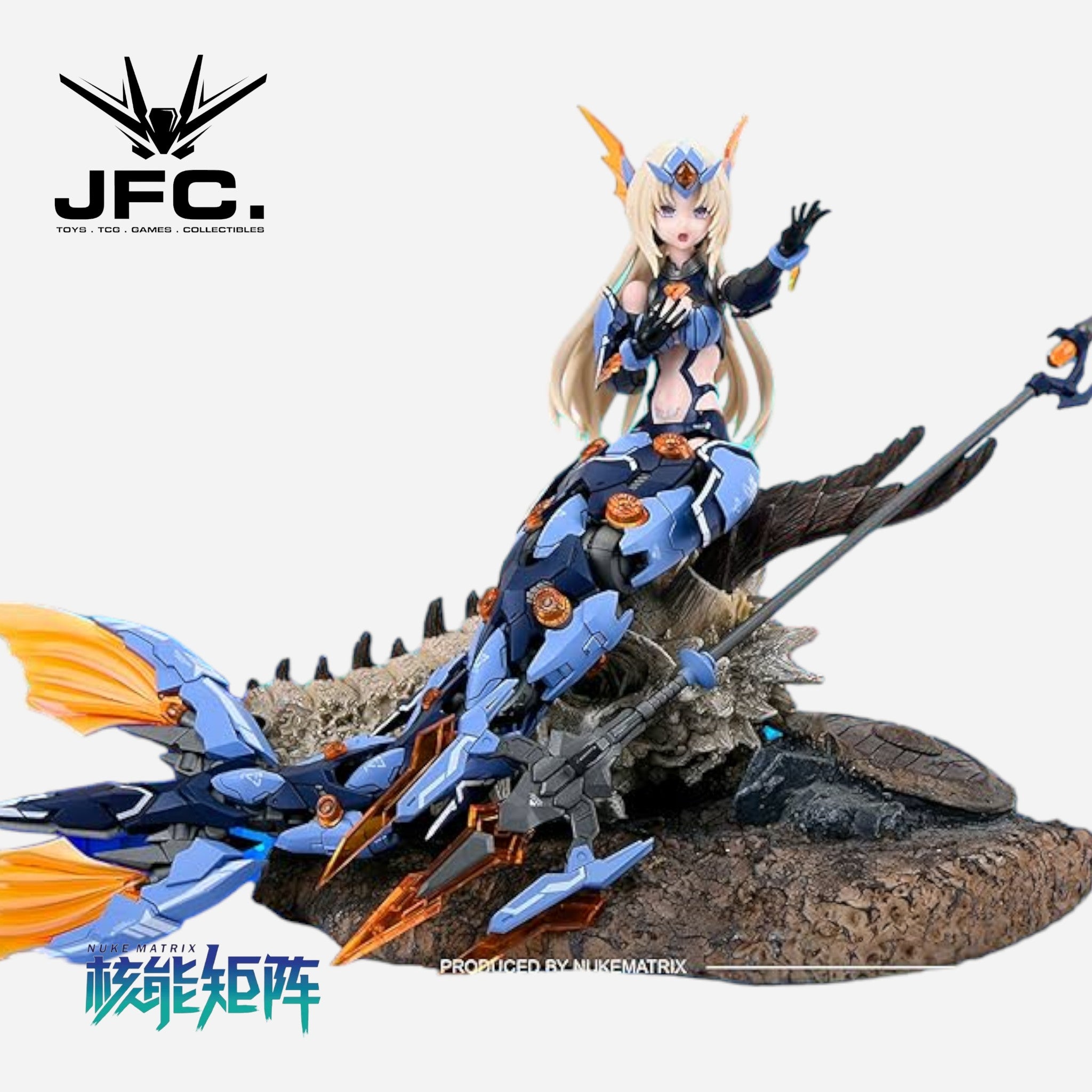 This amazing kit allows you to display Tanya with a long mermaid-like tail, or turn the tail parts into an aquatic mecha companion for her to swim with! In addition to the body and 3 painted face parts, 1 trident (weapon), 1 shield, 2 speakers, 1 microphone, 2 decals, and 1 display stand are included so she can fight and sing to her heart's content! Tanya will also be compatible with certain parts from NUKE MATRIX's previous Harpy kit. Be sure to add her to your collection!