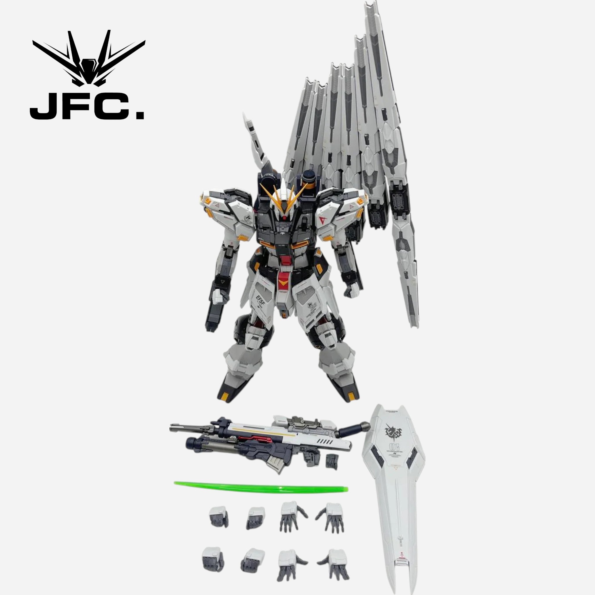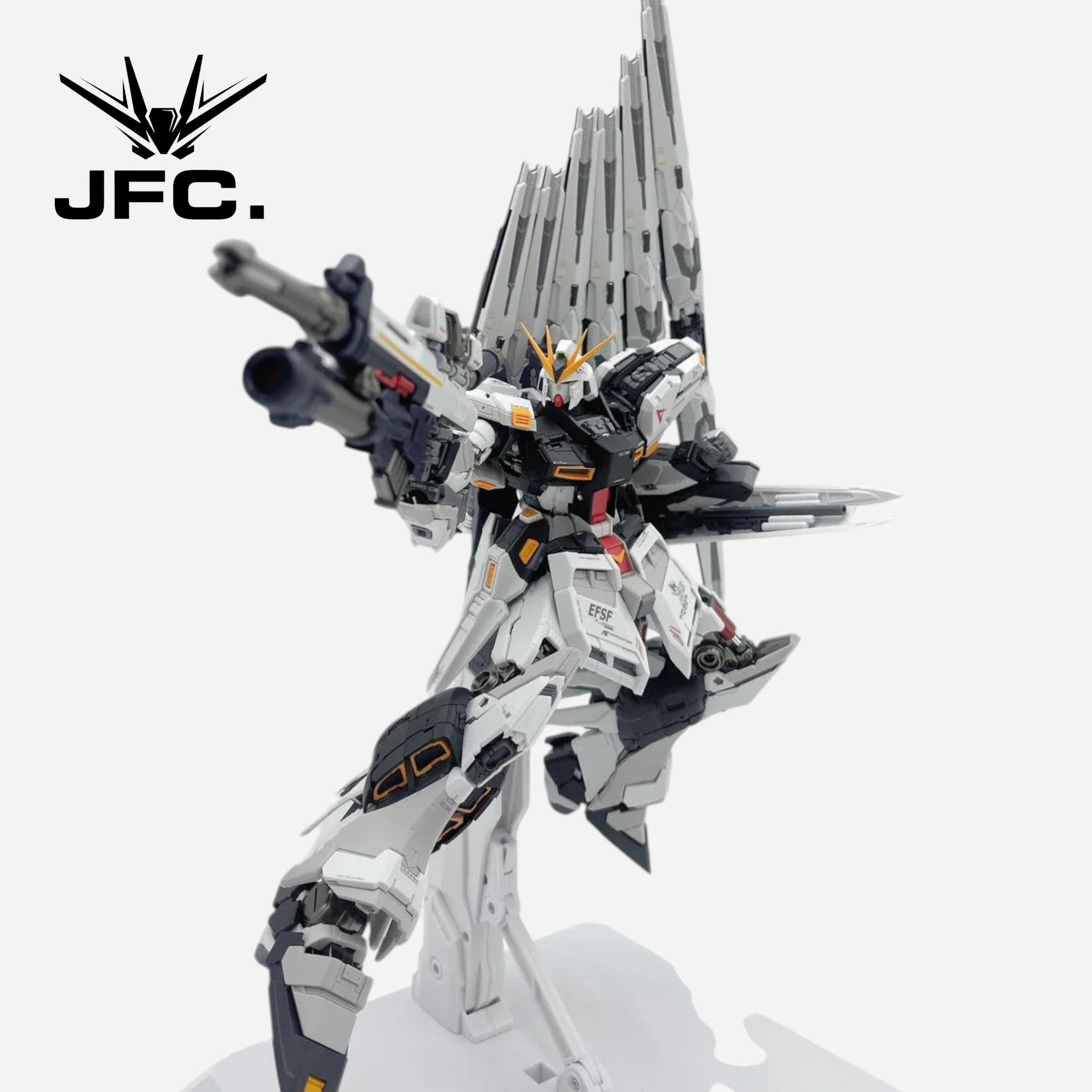- Modern reimagining of the Nu Gundam with aggressive detailing